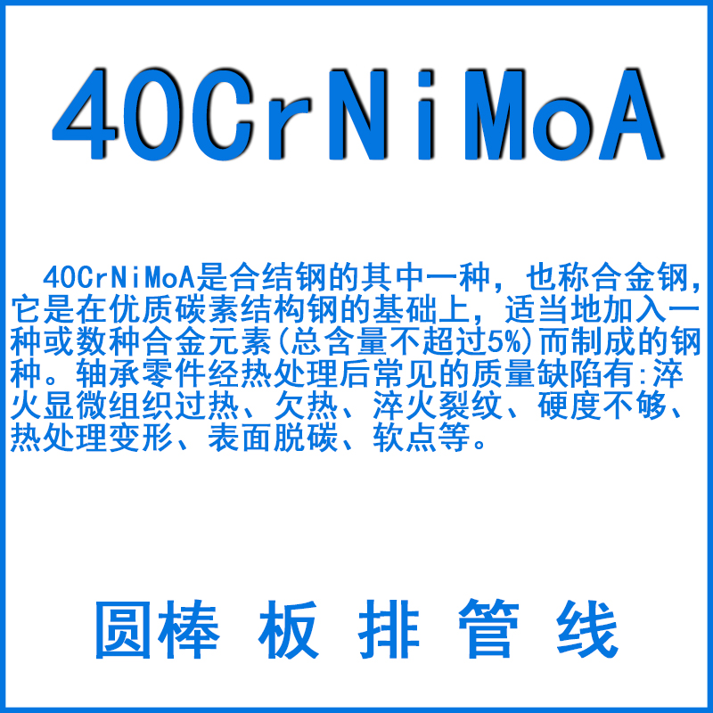 40CrNiMoA合結(jié)鋼,40CrNiMoA鋼材,合金結(jié)構(gòu)鋼簡稱合結(jié)鋼,40CrNiMoA是合結(jié)鋼的其中一種,也稱合金鋼,它是在優(yōu)質(zhì)碳素結(jié)構(gòu)鋼的基礎(chǔ)上,適當(dāng)?shù)丶尤胍环N或數(shù)種合金元素(總含量不超過5%)而制成的鋼種。軸承零件經(jīng)熱處理后常見的質(zhì)量缺陷有:淬火顯微組織過熱、欠熱、淬火裂紋、硬度不夠、熱處理變形、表面脫碳、軟點(diǎn)等。